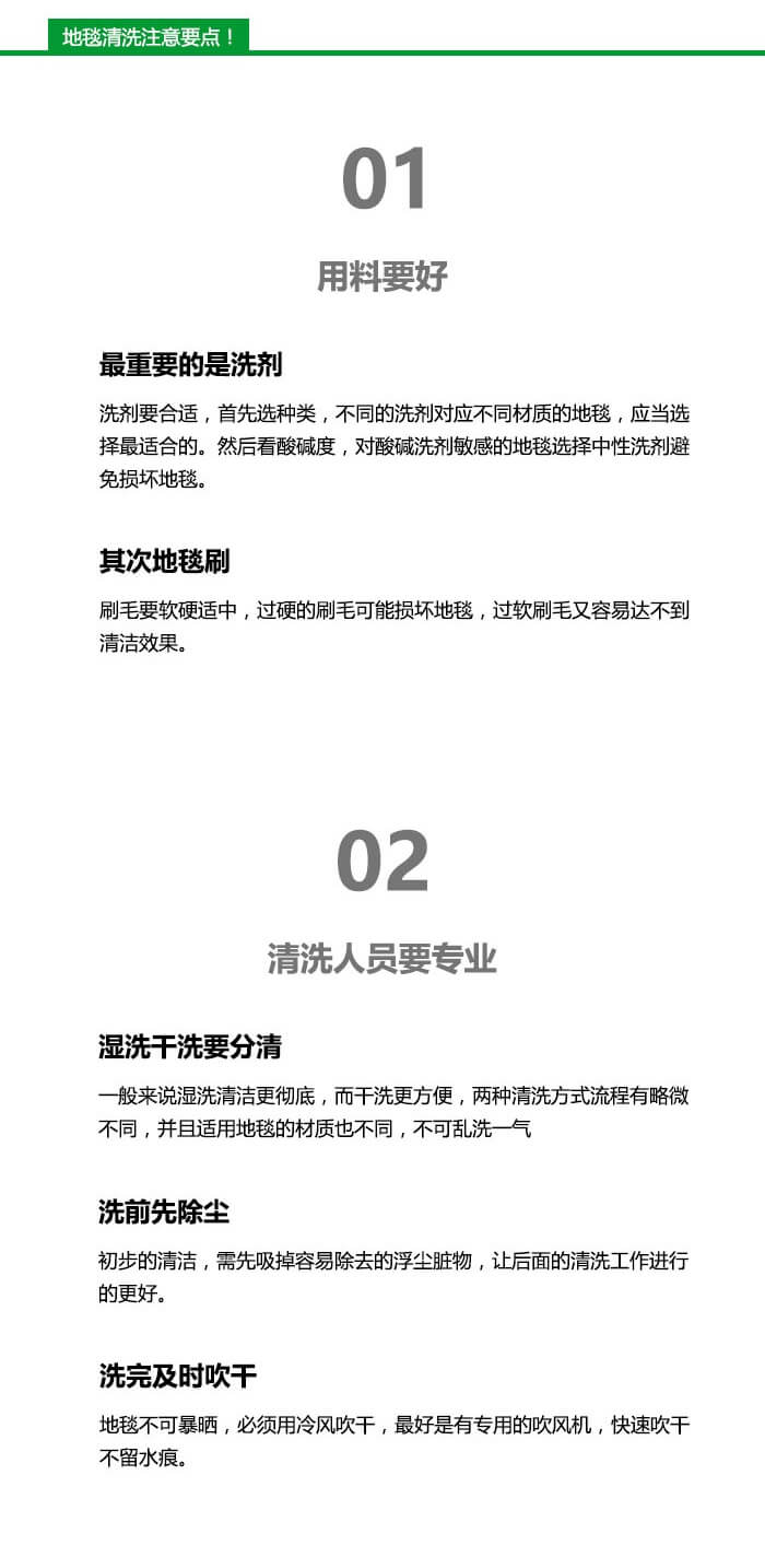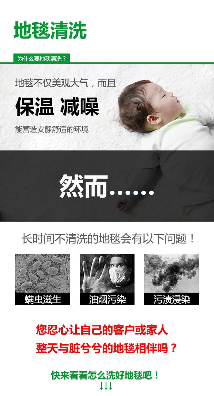 3、家請(qǐng)物業(yè)專業(yè)地毯清洗所用地毯清洗劑是采用高科技環(huán)保不傷地毯的地毯清洗劑;